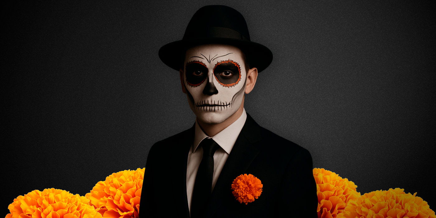 Este disfraz es una reverencia a la tradición mexicana del Día de Muertos. El maquillaje de Catrina o Catrín es central, creando una calavera estilizada con diseños florales, telarañas o geométricos en blanco, negro y toques vibrantes. Se pueden añadir gemas o brillantina.