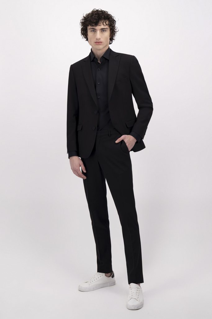 - Base: Traje negro (o gris oscuro), camisa blanca y corbata negra.