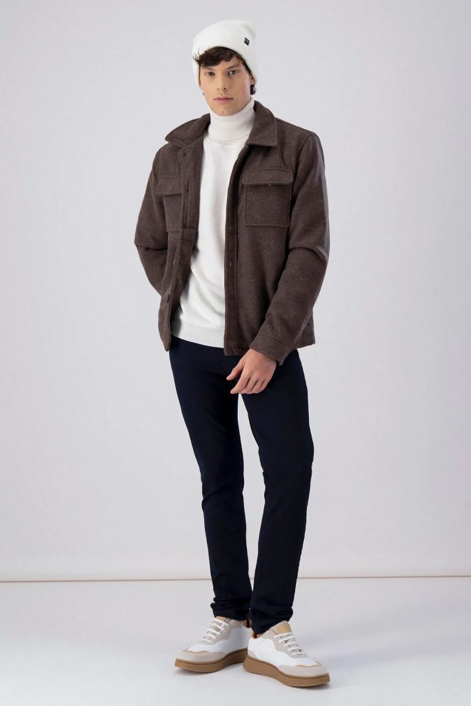 La elección de tu outfit dependerá de tu ambiente familiar, pero puedes seguir la misma línea de los estilos anteriores. Para una opción cómoda y casual, sugerimos elevar un look relajado combinando un suéter con una sobrecamisa. Si la cena es más formal, un saco siempre es una alternativa elegante