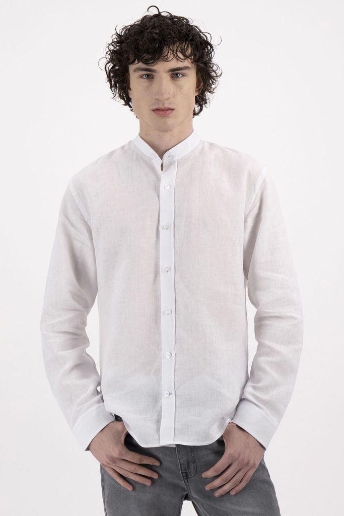 La camisa es lo que elevará el outfit, depende de la situación puedes elegirla según su tipo de cuello. Si solo estarás relajado, elige una de cuello resort o una playera; si vas a salir a cenar o salir a caminar por el centro, opta por una de cuello mao.