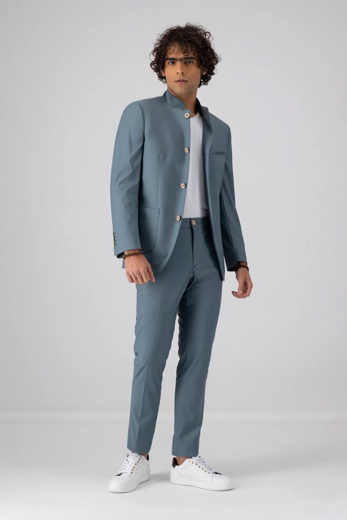 Opta por looks monocromáticos o en tonos suaves. Aquí menos es más, pero bien ejecutado, te recomendamos el traje tlaolli porque tiene un corte relajado sin perder la elegancia.