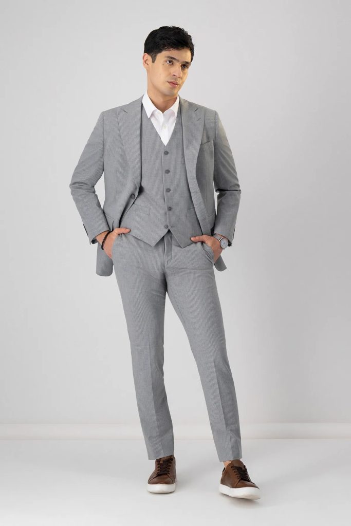 Su confección con lana, corte slim fit y detalles sartoriales de alta calidad, lo hace la elección idónea para el hombre que busca proyectar seguridad. Esta colección la puedes encontrar en trajes de dos o tres piezas, aunque un traje trío grita sofisticación a su máximo esplendor, además, el estampado de rayas mantiene ese toque sobrio.